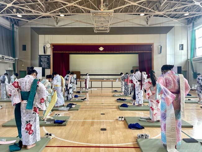 生徒からは「着付けが自分でできて嬉しい。これから機会があれば自分で挑戦してみたい」「男女の着付けの違いを知り、女性着付けの難しさと楽しさを実感した」などといった声を頂戴しました。