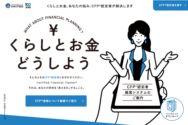 高い専門性と実務能力に基づき、「くらしとお金」に関する様々な相談に的確にお答えするCFP(R)認定者を、より多くの方々に知っていただき、CFP(R)認定者検索システムを分かりやすく解説するツールとなっています。