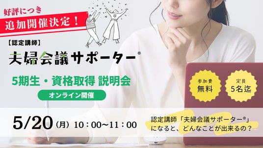 ※認定講師「夫婦会議サポーター」5期生の養成講座エントリーに際して、資格取得説明会への参加は必須ではありません。
