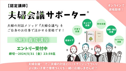 「未来を担う子どもたちに、より良い家庭環境を創り出していける夫婦であふれる社会を目指す」をビジョンに、2015年の創業以来、夫婦の対話メソッド『夫婦会議(R)』を展開するLogista株式会社(福岡県福岡市、共同代表 長廣百合子(妻)・長廣遥(夫))は、認定講師「夫婦会議サポーター(R)︎」5期生 養成講座のエントリーを受付中です。