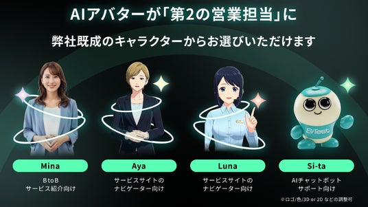 既成キャラクターに加え、実在の社員やオリジナルキャラクターを AI アバター化することも可能。