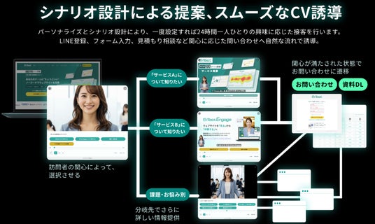 事前に設計されたシナリオに基づき、ユーザーの関心や検討段階に合わせた対話を実現。