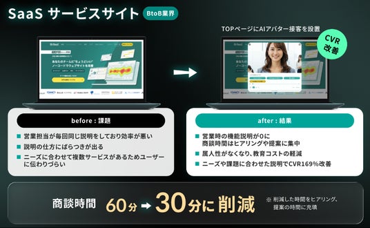 サイト訪問者の行動履歴や閲覧状況に応じて、AI アバターが自然な対話で情報提供・課題ヒアリング・次のアクション誘導を行うことで、従来の “見るだけのサイト” から “体験するサイト” への転換を可能にします。