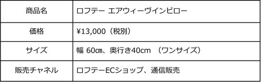 ロフテー株式会社(東京都千代田区、代表取締役社長:吉川正、以下「ロフテー」)は、「ロフテー エアウィーヴインピロー」を8月22日(金)より先行受注、8月25日(月)より一般販売いたします。創業97年の知見を活かしたロフテー独自の分割構造に、エアウィーヴの独自技術を使った素材「エアファイバー(R)」を組み合わせることで、フィット感と寝返りのしやすさを両立。高機能でありながら、お求めやすい価格を実現したエントリーモデルです。