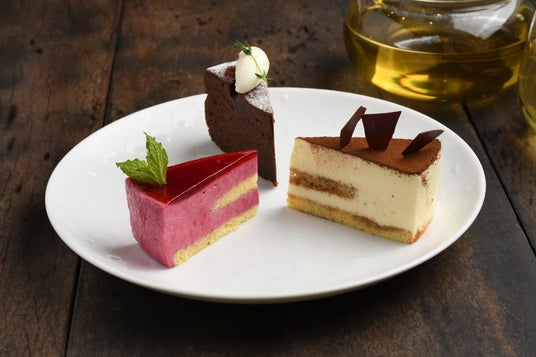 東北牧場の木の実と山菜の3つのケーキ 東北牧場で収穫された栃の実、カシス、ふきのとうを使用しています。