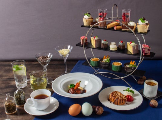 野草と木の実香る牧場ショコラアフタヌーンティー。東北牧場の野草や木の実、野菜、小麦、卵を使用したアフタヌーンティーです。(2024年12月新メニュー)