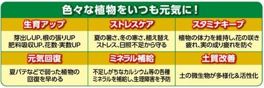 特長: 環境ストレスに負けない元気で丈夫な植物を育てる5つのパワー成分を配合