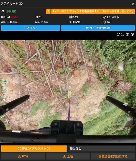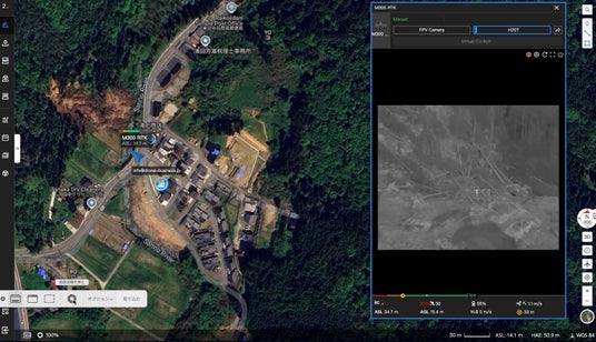望遠+赤外線カメラを搭載したドローンを使用し、要救助者を捜索し映像および位置情報を転送