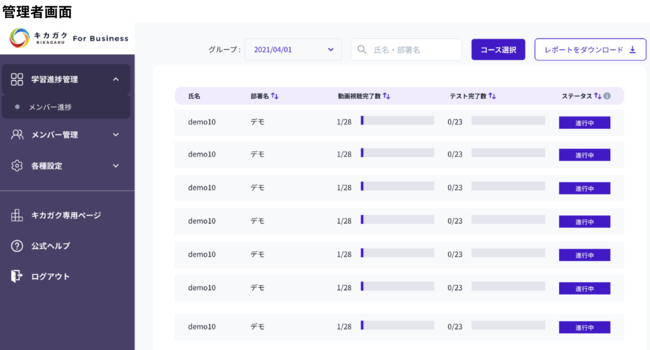e ラーニングコンテンツは既存の LMS(学習管理システム)への納品も可能ですが、キカガク for Business でもご利用いただけます。