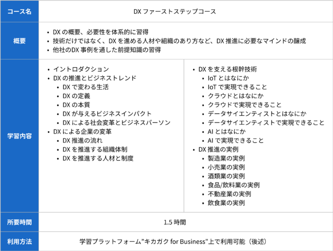 ■ キカガク e-ラーニング 『DX ファーストステップ』詳細