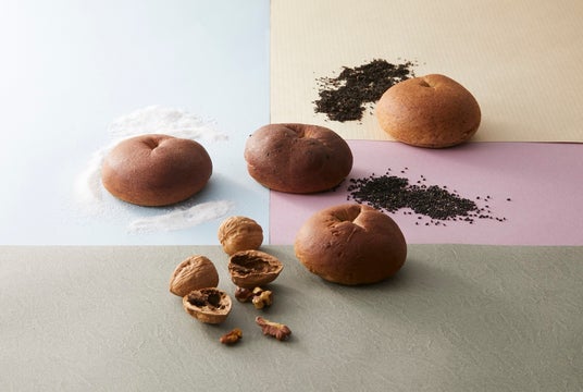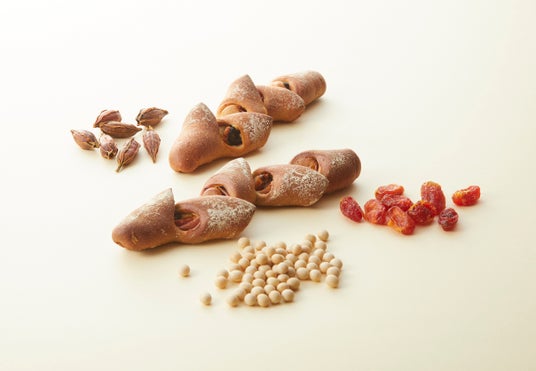 香ばしいきな粉入りの生地に丹波の黒豆をごろごろ入れた黒豆エピはカルシウム、マグネシウム、食物繊維を配合し、高たんぱく質に仕上げました。ハーブ入りオイルに漬けたセミドライトマトとブラックオリーブ、ベーコンが入ったトマトエピは嬉しい糖質40%オフ(※)で、鉄分を配合しています。