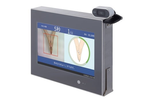 - 新製品は、厚生労働省が推奨する食品衛生の手洗い6ステップの正しさをAI技術で自動判定するシステム機器です。