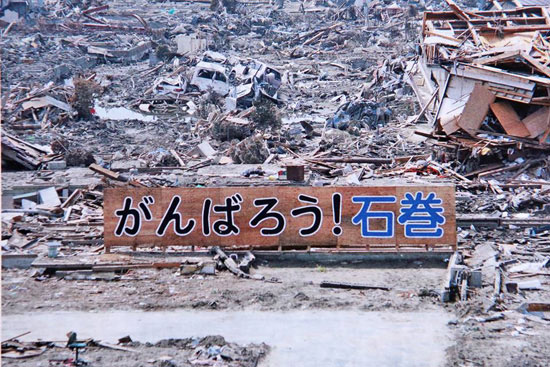 東日本大震災により大きな被害を受けた石巻市に「がんばろう!石巻」と書かれた看板が立てられました。