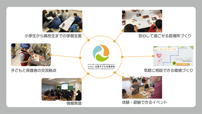 NPO法人兵庫子ども支援団体では、「子どもが笑って過ごせる地域の形成」をミッションに掲げ、地域の子どもたちに家庭環境や自分自身の環境によって夢を諦めることがないように学習支援や居場所づくり、オンライン相談など様々な活動に取り組んでいます。
