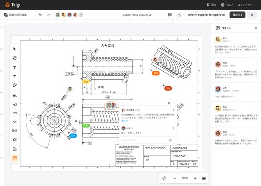 ※1:図面上に直接コメントや指示を加えながら、リアルタイムで共同編集ができる機能です。