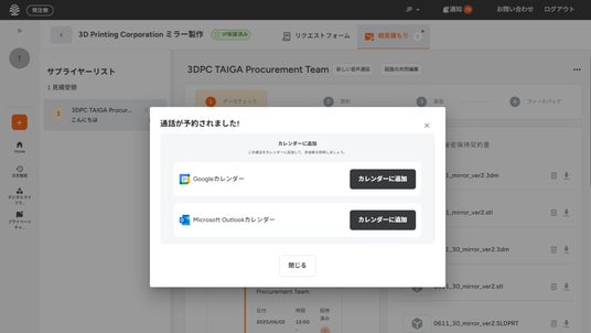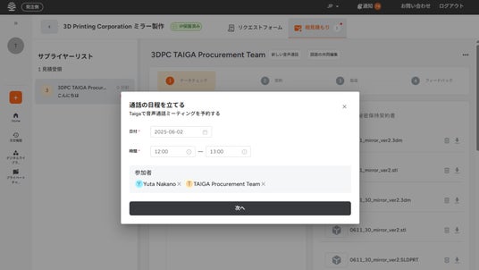 株式会社3D Printing Corporation(本社:神奈川県横浜市、代表取締役:デヴォア・アレキサンダー、以下「3DPC」)は、ものづくりのためのデジタルプラットフォームサービス「Taiga(タイガ)」において、新機能「音声通話」機能を追加するとともに、リクエストフォームのユーザーインターフェース(UI)の大幅な改善を行いましたことをお知らせいたします。