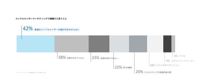 インフルエンサ―マーケティングにおける最大の課題点は「最適なインフルエンサーの選び方が分からない」です。その背景には以下のようなポイントが挙げられます。