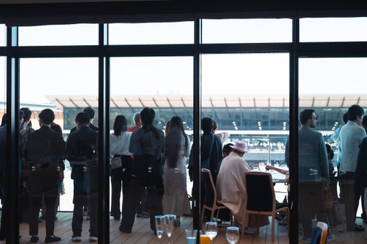 JRA馬事公苑内のメインオフィス3階に設けられた特別フロアでは日本酒を提供。大会関係者や協賛企業のお客様など400人を超えるご来場者が、TAKANOMEの日本酒や食事を楽しみながら、大会の興奮を共有しました。
