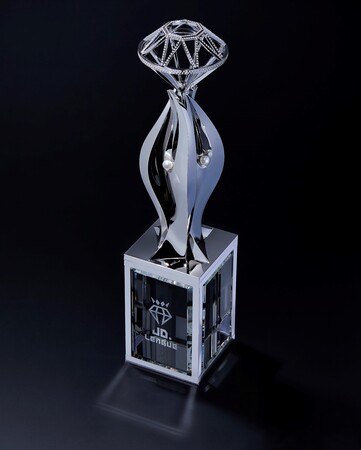 360度どこから見ても美しく見えるように作られた、流れるようなラインとパールとダイヤモンドの煌めきが美しいデザインが、JD.LEAGUEのロゴモチーフでもあるダイヤモンド(フィールド)で活躍する選手たちの栄光を称えることになります。