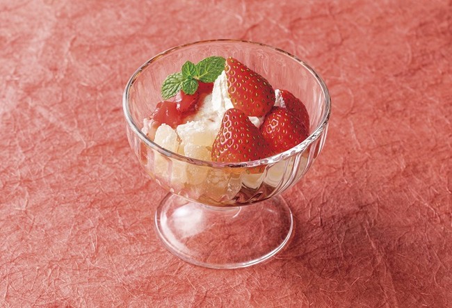 フレッシュいちごに、和スイーツの優しい甘みと食感が加わったメニューです。最後に黒蜜の深い美味しさとあわせてご堪能ください。