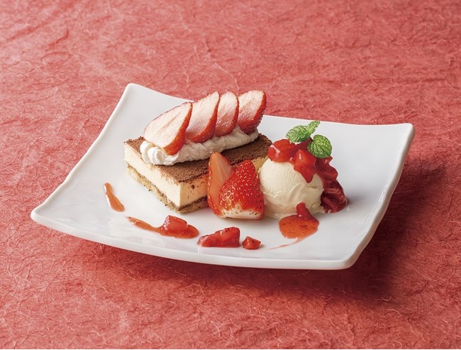 フレッシュいちごと滑らかな口どけのティラミスと本格バニラアイスクリームの組み合わせ。贅沢な美味しさの共演をお楽しみください。