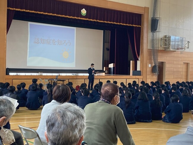 同校の山田亮太校長は、「相手を思いやる気持ちは決して特別なものではない。誰もが安心して暮らせる社会にするため、ここで学んだことを家で家族にも話をして広めてほしい。」と語り、認知症サポーター証を生徒に手渡しました。