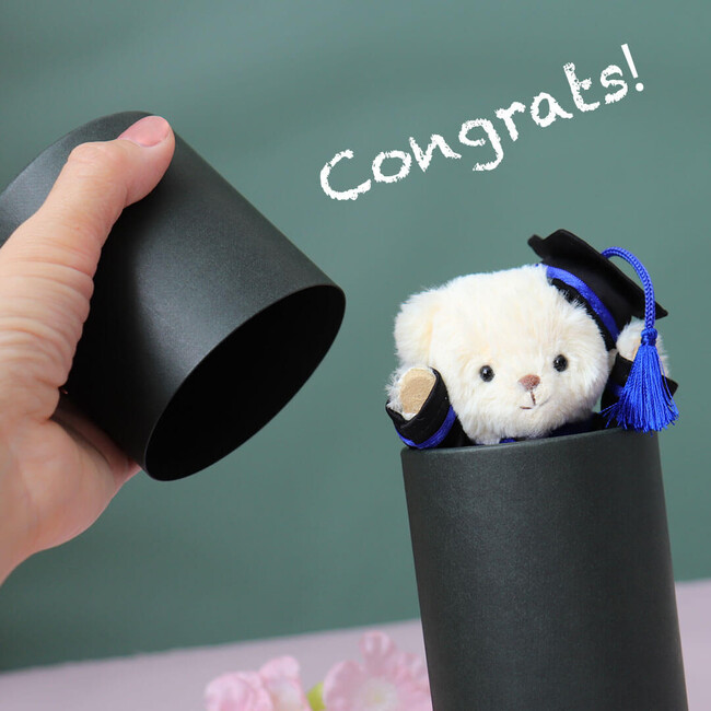 小さなテディベアの体にぴったりのアカデミックガウンとタッセル付きの角帽は、小さいながらも本格的な作り。アカデミックガウンを身にまとったテディベアは誰もが笑顔になる可愛らしさで、おめでとうの気持ちを表現します。