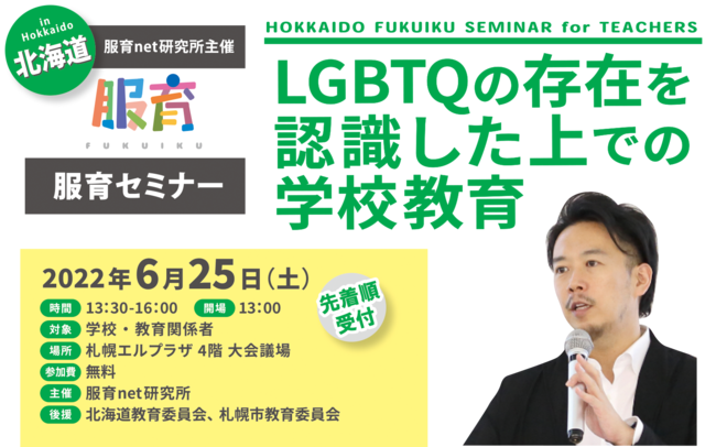 LGBTQに関する研究や教職員向け資料作成などに多数関わられている宝塚大学看護学部の日高庸晴教授を講師にお迎えし、「LGBTQの存在を認識した上での学校教育」と題して学校関係者を対象に開催予定です。