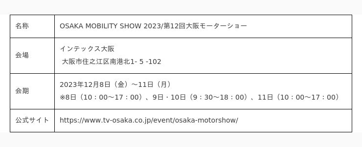 ■OSAKA MOBILITY SHOW 2023 第12回大阪モーターショー 概要