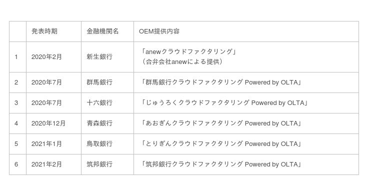 日本初のオンライン完結型ファクタリングサービス「クラウドファクタリング」を提供するOLTA株式会社(代表取締役社長兼CEO:澤岻 優紀、以下、OLTA)は、株式会社筑邦銀行(取締役頭取:佐藤 清一郎、以下、筑邦銀行)と共同で「クラウドファクタリング事業」を立ち上げ、2021年3月8日よりサービス提供を開始いたします。