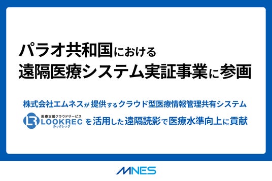 株式会社エムネス(本社:広島県広島市、代表取締役:阿部伸一)は、このたび、株式会社シード・プランニング(所在地:東京都文京区、代表取締役社長:梅田 佳夫)が採択された、総務省の令和6年度「パラオにおける遠隔医療システムの展開に向けた実証の請負」において、クラウド型医療情報管理共有システム「LOOKREC」の提供および遠隔読影コンサルテーションサービスを提供し、実証を完了しましたことをお知らせいたします。
