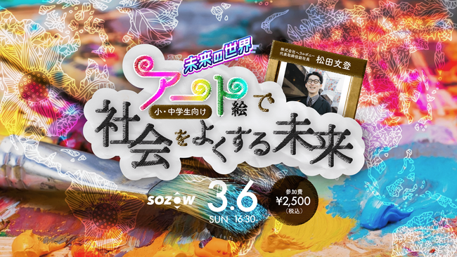 Go Visions株式会社(所在地:東京都品川区、代表取締役:小助川 将)が運営する小・中学生向けオンラインの学び場「SOZOW(ソーゾウ)」は、3月6日(日)に「アート×福祉」の拡張に挑戦している株式会社ヘラルボニー 代表取締役副社長 松田文登氏をゲストにお迎えし、子どもたちがアートの未来や新たな可能性を探究できる特別イベントを開催いたします。