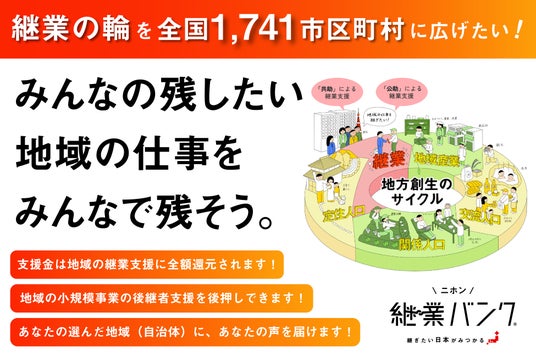 30自治体から全国1,741市区町村へ拡大。2026年2月3日より全国で継業の相談が可能。継業を応援するクラウドファンディングも開始