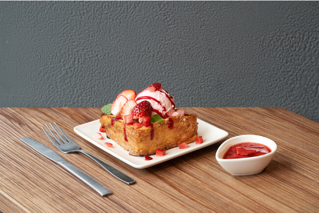 大人気のフレンチトーストに苺アイス、ベリーソース、苺を贅沢にトッピングしました。