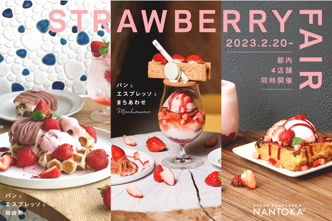 株式会社じそく1じかん(本社:東京都渋谷区、代表:石井つよシ・服部峻介)が展開する、「パンとエスプレッソと自由形」、「なんとかプレッソ」、「パンとエスプレッソとまちあわせ」、「なんとかプレッソ2」の4店舗にて2023年2月20日(月)からあまおういちごをふんだんに使用したメニューをお楽しみいただける「いちごフェア」を開催いたします。