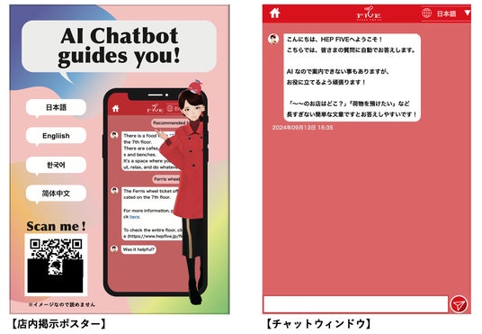 大阪・梅田のHEP FIVEにて、kiwamiの開発したアバターインフォメーション(自動応対及びオペレータによる遠隔接客)を試験導入しておりますが、今回スマホで利用可能なWEBチャット案内が新たに加わりました。アバターインフォメーションには、kiwamiのアバター接客ソリューション「xR Cast Concierge」、「xR Cast HoloPhone」を、WEBチャット案内には「Ratel AI」を採用。オンラインとオフライン、どちらからでもバーチャル店員がユーザーサポートをする、総合的な館内案内が実現されます。