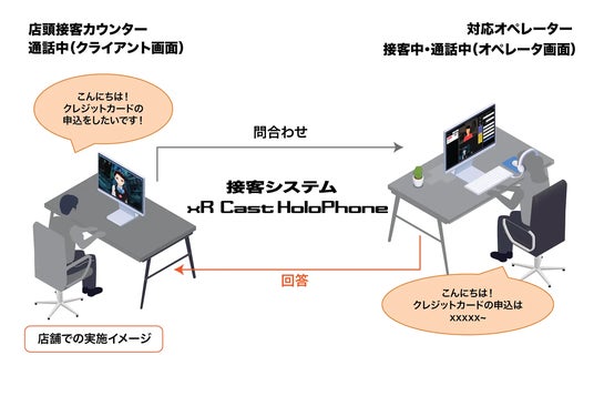 アバター接客システム「xR Cast HoloPhone」と連携することで、有人リモート接客にも対応しております。