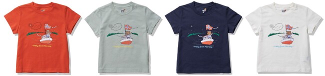 絵本のワンシーンから切り取ったプリントTシャツは、太陽の下で遊ぶヘリーベアをあしらいました。採用している生地は、肌触りのいいコットン100%ながら吸汗速乾性を備えた組織、加工にしているため、汗をかきやすいシーンでも快適に着られるのが魅力。におい対策として、抗菌防臭のポリジン・バイオスタティック加工を採用しています。