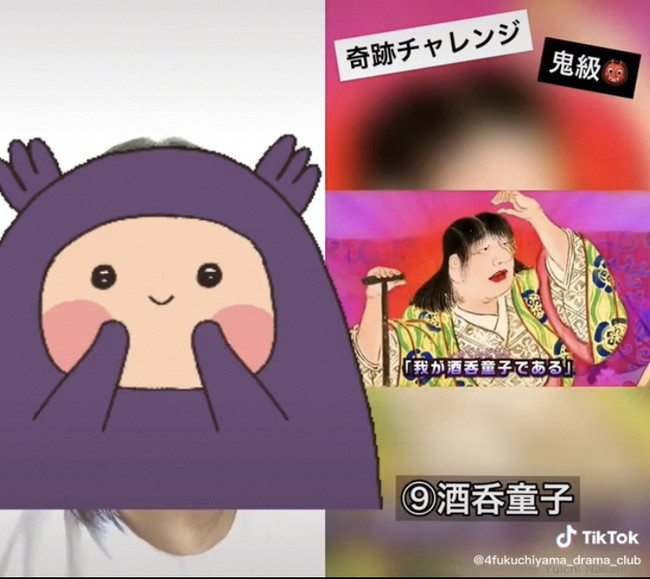 「#奇跡チャレンジ」とは、福知山市公式「転鬼」TikTok上のアフレコ用素材動画に、ユーザーが「デュエット機能」で声を吹き込みTikTokに投稿するというユーザー参加型企画で、2022年3月14日~2022年5月9日まで行っていました。「奇跡チャレンジ」という名前には、TikTokフォロワー60万人を擁す声優・奇跡さんが、最強の鬼・酒呑童子や鬼退治隊など「転鬼」キャラクター14役を演じ分けたように、1人で色んな声に挑戦してほしいという意味を込めています。