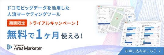 ドコモGPS統計データ* を活用したプロダクト開発を行う株式会社データワイズ(本社:東京都港区、代表取締役社長:今田 隆秀 https://www.datawise.co.jp/)は、全国の自治体(都道府県・市区町村)・警察・公益法人を対象に、2025年6月17日(火)~2025年9月30日(火)までの任意の1か月間、人流分析サービス「Datawise Area Marketer 国内居住者版」および「Datawise Area Marketer インバウンド版」を無償トライアル提供します。