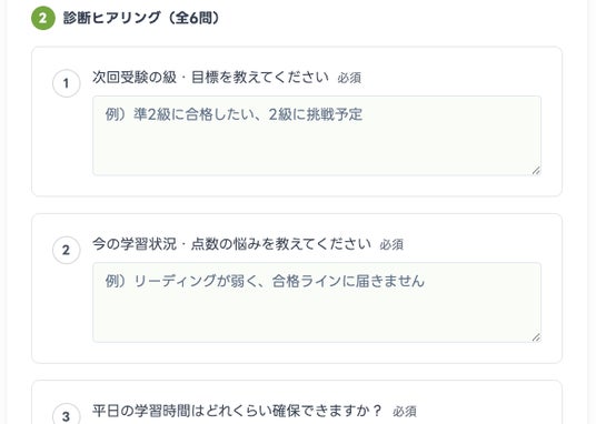 診断ヒアリングの回答画面