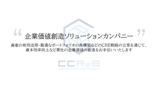 当社は、2019年7月の創業以来、“全ての企業不動産へのソリューションを通じて、日本の経済・産業に貢献する。”を企業理念に、これまで数多くの企業のCREニーズに応えるサービスを提供して参りました。当社では、真のCRE戦略とは、単に不動産の売買を行うことではなく、「その最適な保有・利用方針を経営戦略・財務戦略と合わせて日頃から検討し、然るべきタイミングで戦略性を持って実行すること」であると考えております。足元の経営環境は、不安定な世界情勢、急激な為替変動、物価高騰、資本効率改善に対する資本市場からの要請等、ますます複雑さを増しており、企業不動産戦略(CRE戦略)を経営戦略・財務戦略と一体で検討する重要性が高まっております。
