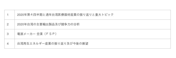 <2020年第4四半期と通年台湾医療器材産業の振り返りと重大トピック>(本文から一部抜粋)