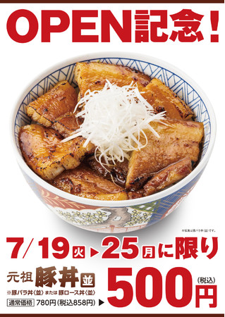 船場センタービル10号館店のオープンを記念して、7/19(火)~25(月)の期間中、当店自慢の「豚バラ丼〈並〉」または「豚ロース丼〈並〉」を特別価格500円(税込)にて提供いたします。