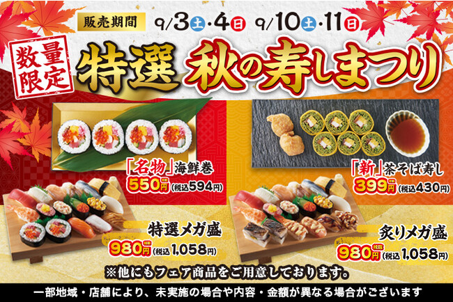 持ち帰り寿し店の「小僧寿し」「茶月」を運営する株式会社小僧寿し(本社:東京都中央区 代表取締役社長 良本 宣之)は、持ち帰り寿し店「小僧寿し」にて、9月3日(土)~4日(日)・10日(土)~11日(日)の期間限定で、「特選秋の寿しまつり」を開催いたします。