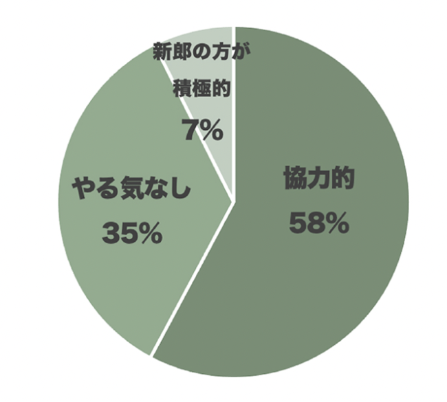 彼が「積極的に準備に協力してくれるか?」という質問に対して、結果は65%の方が「積極的」または「協力的」という結果となった。