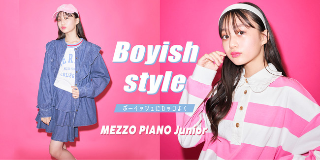 ボーイッシュアイテムに「メゾ ピアノ ジュニア」のガーリー要素をプラスし、ジェンダーレス時代のスタイルを目指す女の子の声に応えたラインナップ。