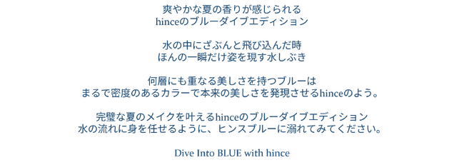 Mood-Narrativeメイクアップブランド「hince(ヒンス)」から6月1日(土)※より爽やかな夏の香りが感じられる「BLUE DIVE COLLECTION」が登場します。