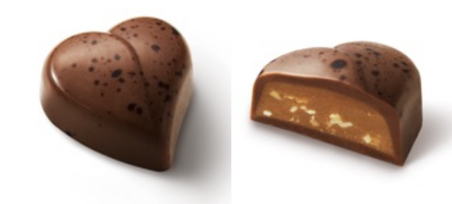 濃厚なローストアーモンドのフィリングにカリカリのアーモンドを散りばめ、繊細なミルクチョコレートのシェルに封じ込めたハートの形が愛らしい一粒 。