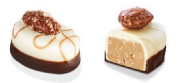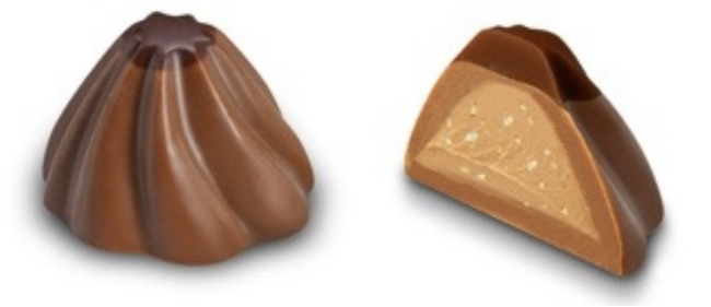 ヘーゼルナッツのフィリングとアーモンドヌガーを、くちどけなめらかな最高級のミルクチョコレートのシェルに詰めた一粒 。